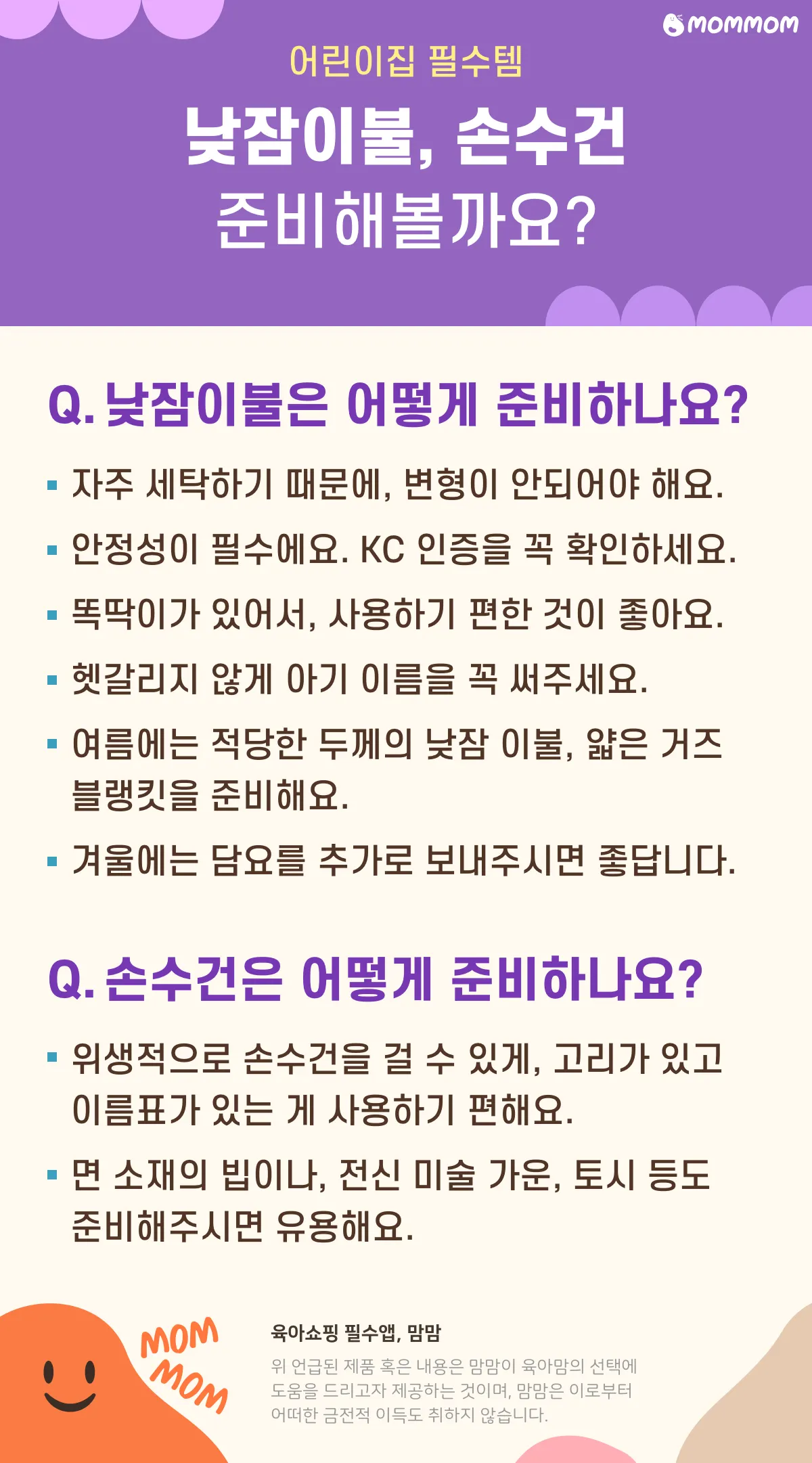 Q3. 낮잠 이불은 하나면 충분한가요? 손수건은 어떻게 준비하나요?