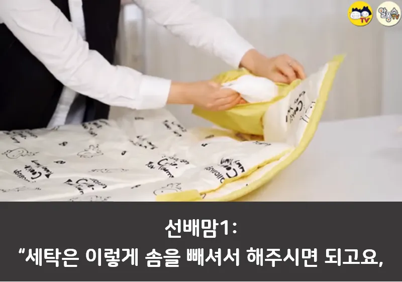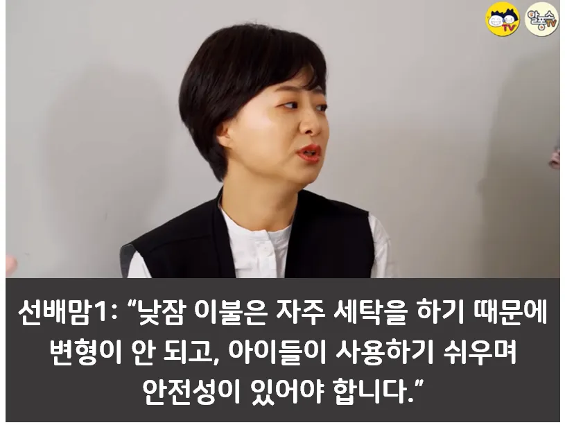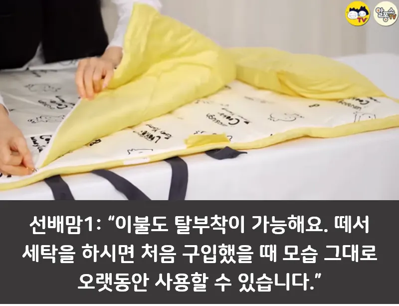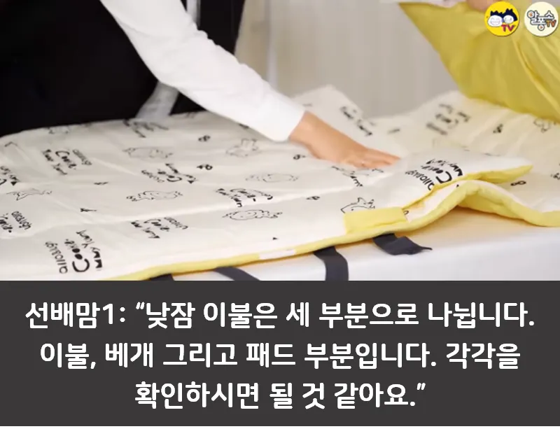 낮잠 이불은 자주 세탁하는 제품이기 때문에 잘 헤지지 않는 것이 좋고요, 똑딱이로 되어 있는 것이 사용성이 편리해요.