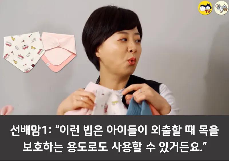 을 흘리거나 했을 때 유용하고, 외출 시에 목을 보호하는 용도로도 사용이 가능합니다. 뿐만 아니라, 어린이집에서는 미술