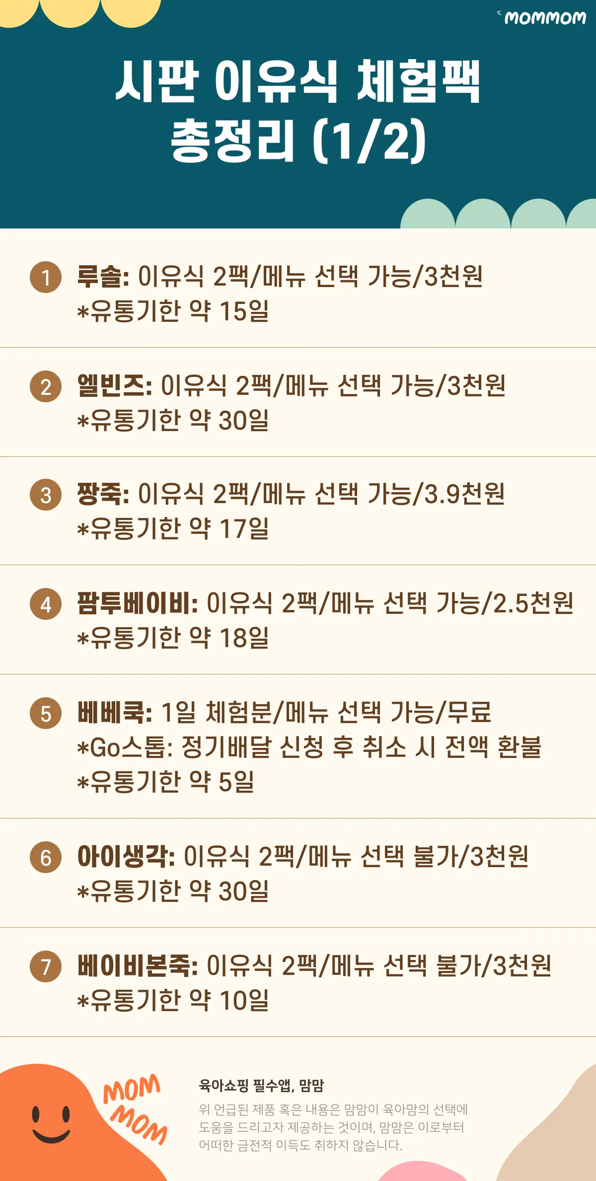 배송비만 결제하면 받아볼 수 있는 이유식이 많으니, 우리 모두 알뜰히 챙겨보고, 우리 아이가 잘 먹는 이유식으로 결정하도록 해요!