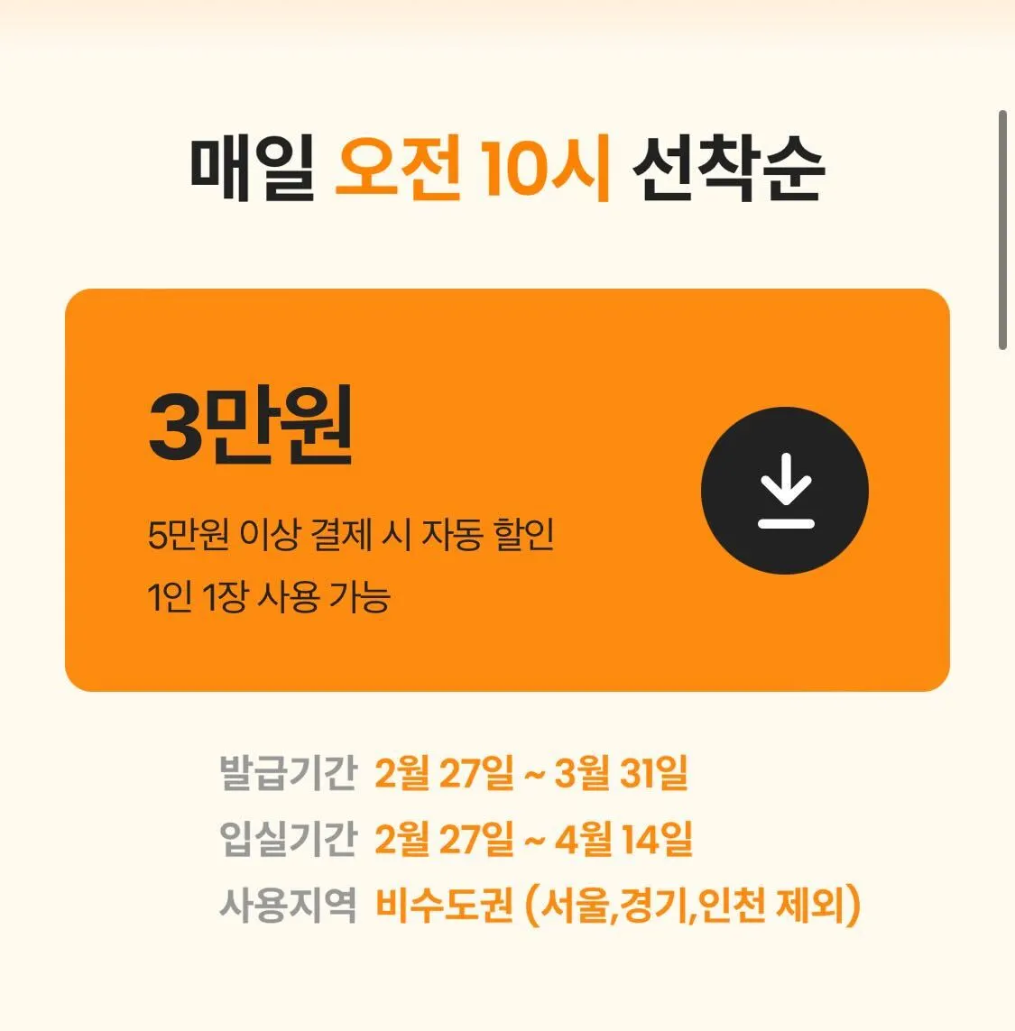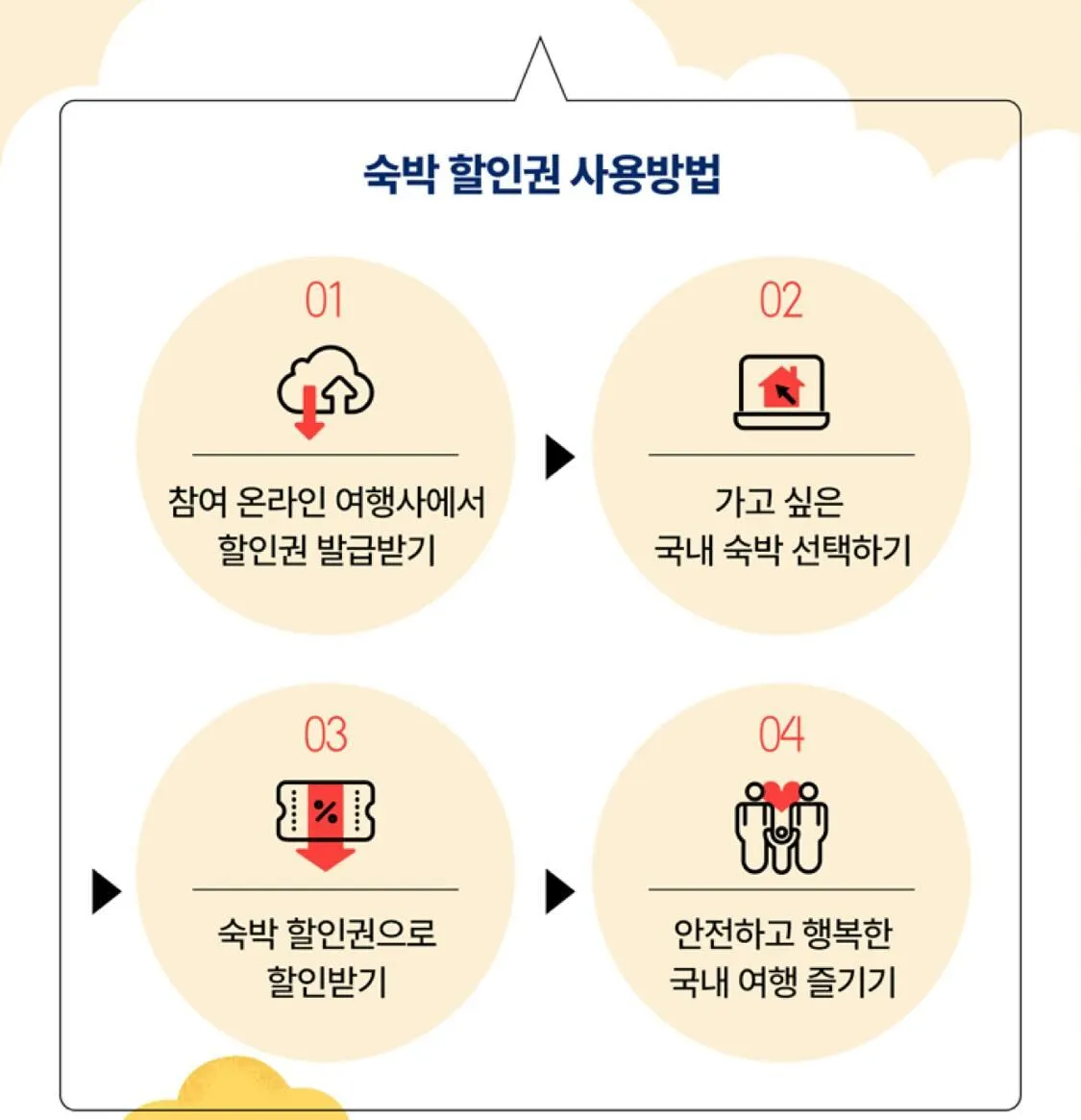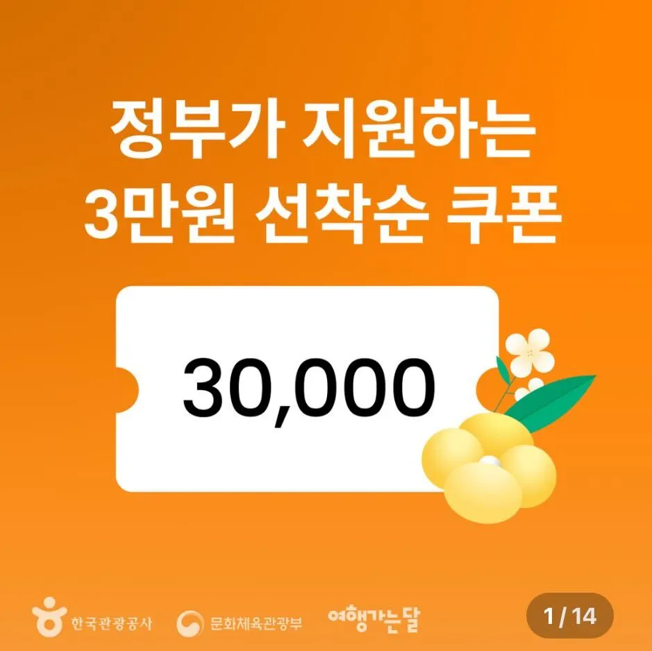 2월 27일 (화)부터 3월 31일 (금) 발급기간 동안 온라인 여행사 채널을 통해 5만원 이상 숙박을 예약하면 나라에서 3만원 할인 쿠폰을 제공해주는 혜택이에요.
