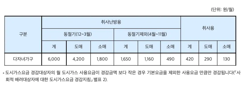 다자녀 전기료/도시가스료/지역난방비 경감