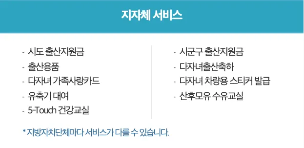 *200만원의 바우처 이외에도 지자체에 따라 추가적으로 지급되는 출산지원금이 상이하기 때문에 지자체에서 시행중인 서비스를 꼭 확인해 주세요!
