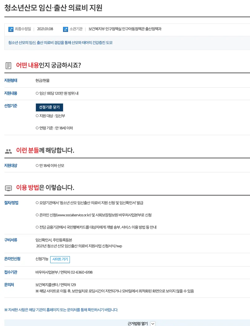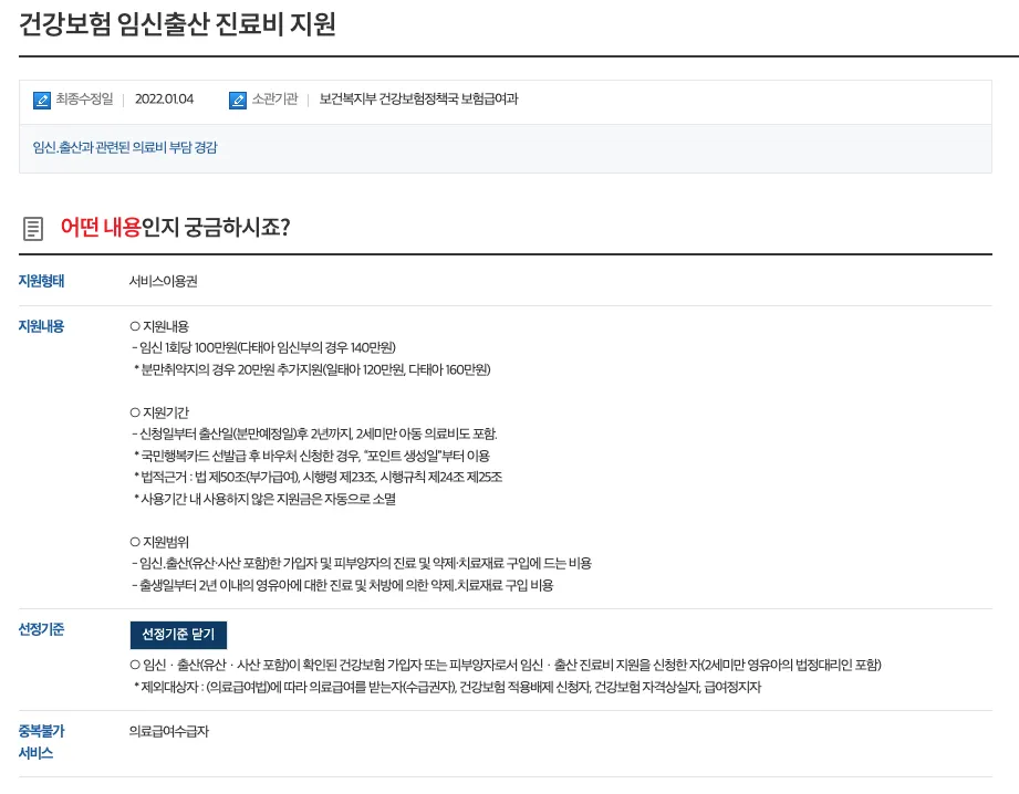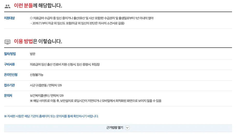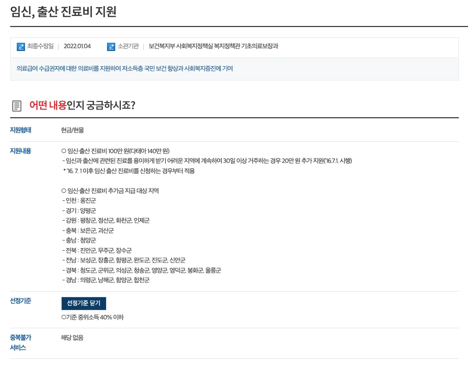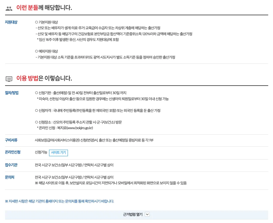 또한, 임신과 출산에 관련된 진료를 쉽게 받기 어려운 지역에서 30일 이상 거주하는 경우에는 20만원이 추가 지급 된다고 하니 대상 지역을 꼭 참고해 주세요