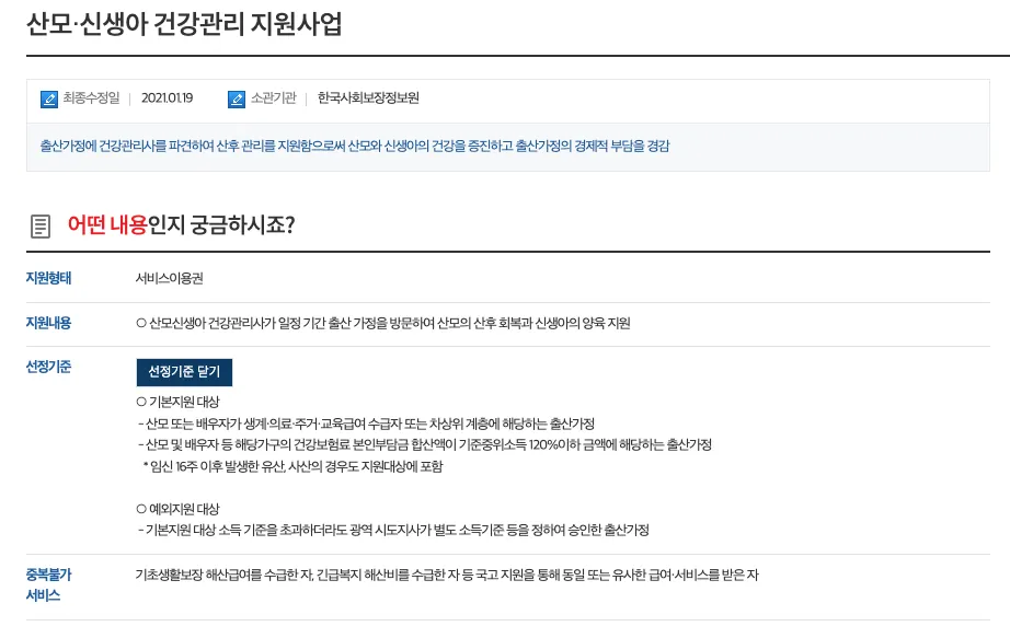 또한, 예외적으로 기본지원 대상이 아니더라도 광역 시도지사가 별도로 정한 소득 기준에 충족되는 출산 가정도 대상이 될 수 있습니다!