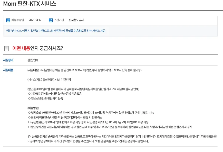 코레일멤버십 회원인 임산부 외 보호자 1명에 한해 특실 좌석을 일반실 가격으로 제공합니다!