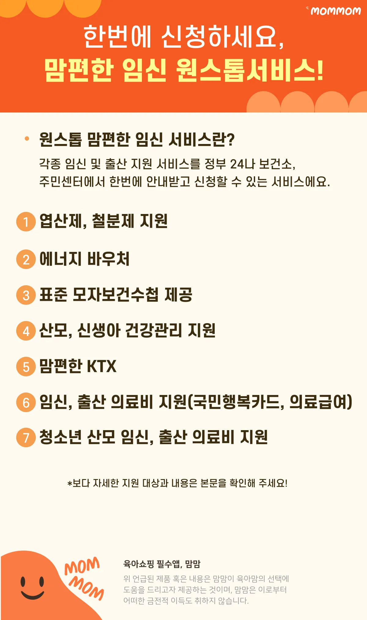 이것저것 따로 알아볼 필요 없이 맘편한 임신 원스톱서비스로 한큐에! 신청하시고, 혜택 받아보시면 좋을 것 같아요