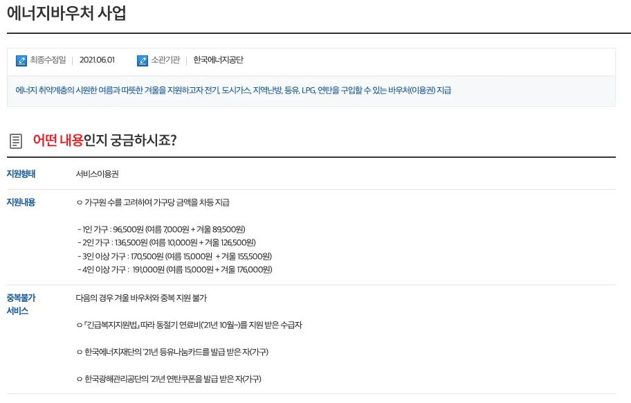에너지 바우처를 지급받기 위해서는 소득 기준과 가구 구성원 특성 기준을 모두 만족해야 합니다!