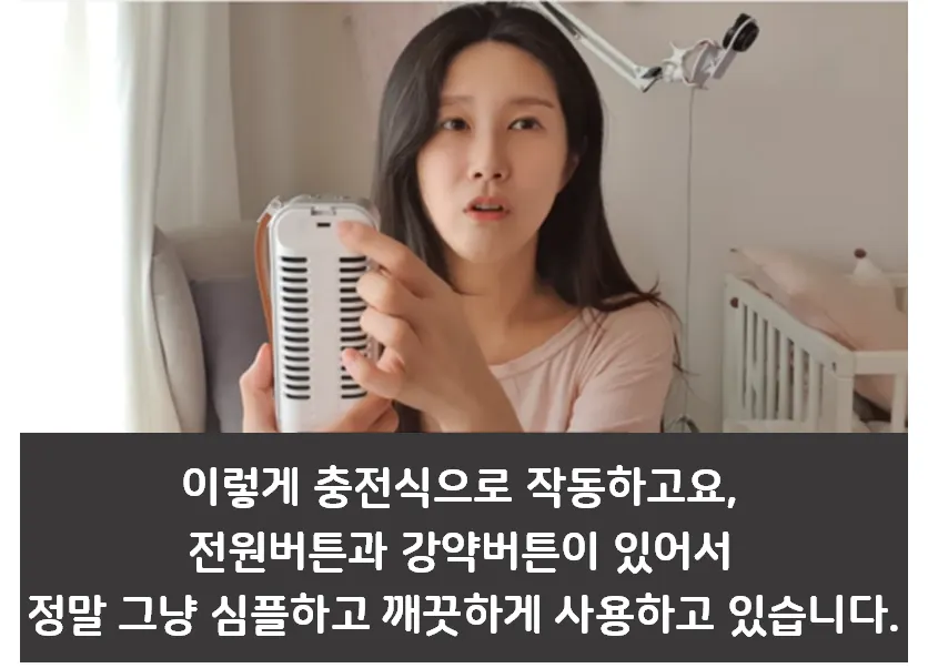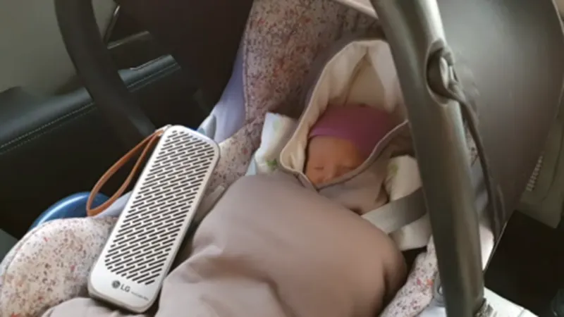 특히 신생아의 경우에는 조리원과 병원에 가기 위해서 외출이 불가피한 경우가 있는데, 그럴 때마다 이런 소형 휴대용 공기 청정기가 굉장히 유용해요.