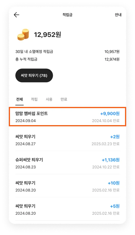 적립금 관련 문의는 맘맘 고객센터로 문의해 주세요.