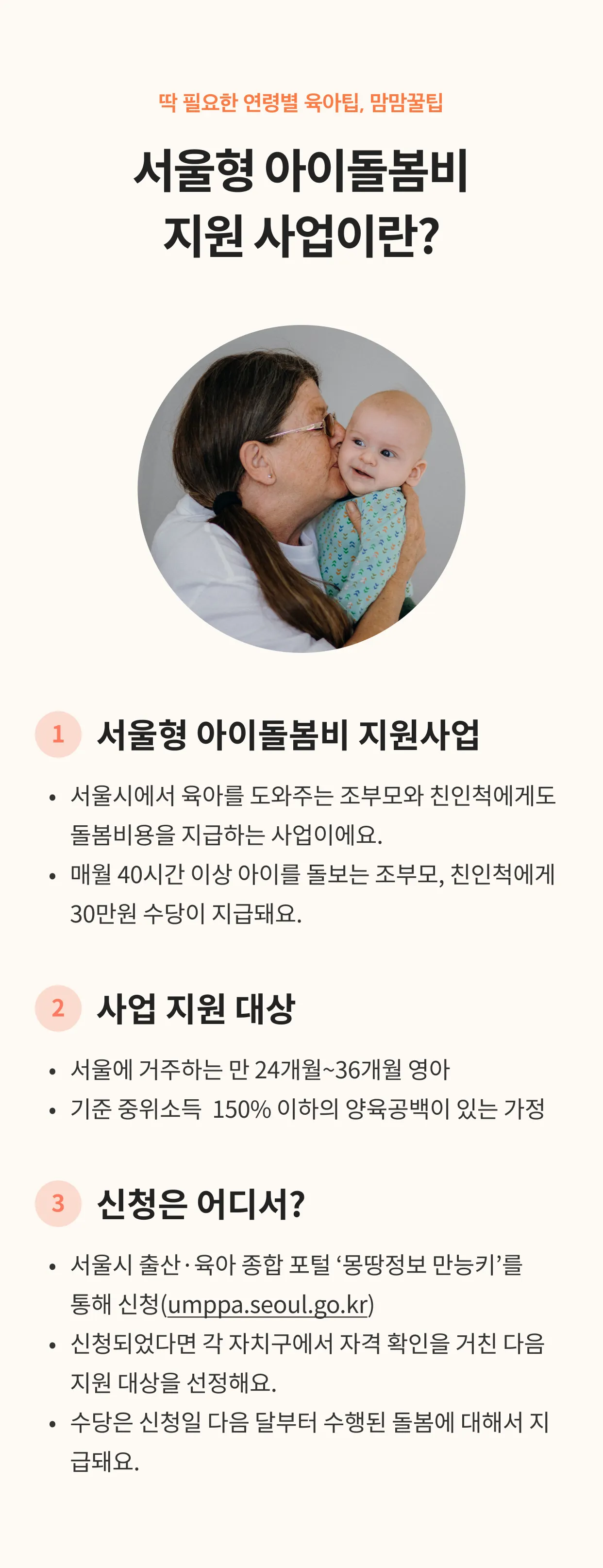 서울형 아이돌봄비 지원 사업이란 서울시에서 육아를 도와주는 조부모
