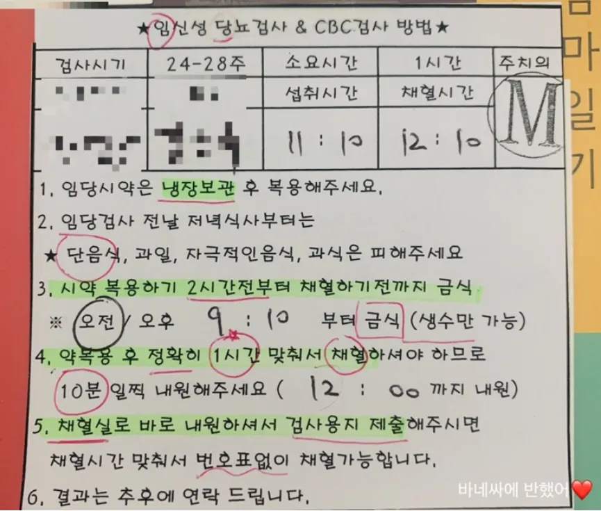 그래서 집에서 시약을 먹고 가는 경우라면 채혈하기 10분 전에 반드시! 병원에 도착하기로 해요~