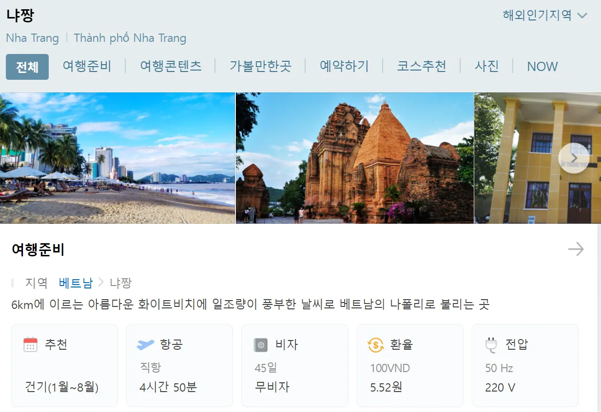 비행기로 약 4시간 50분이 걸리는(직항 기준) 베트남의 도시로, 화이트비치가 특히 예뻐서 베트남의 나폴리