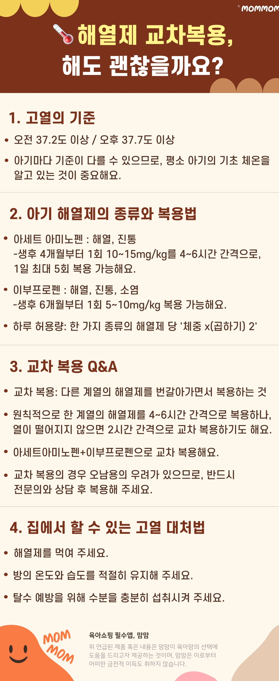 교차 복용은 한 계열의 해열제 복용으로 열이 내려가지 않을 경우,