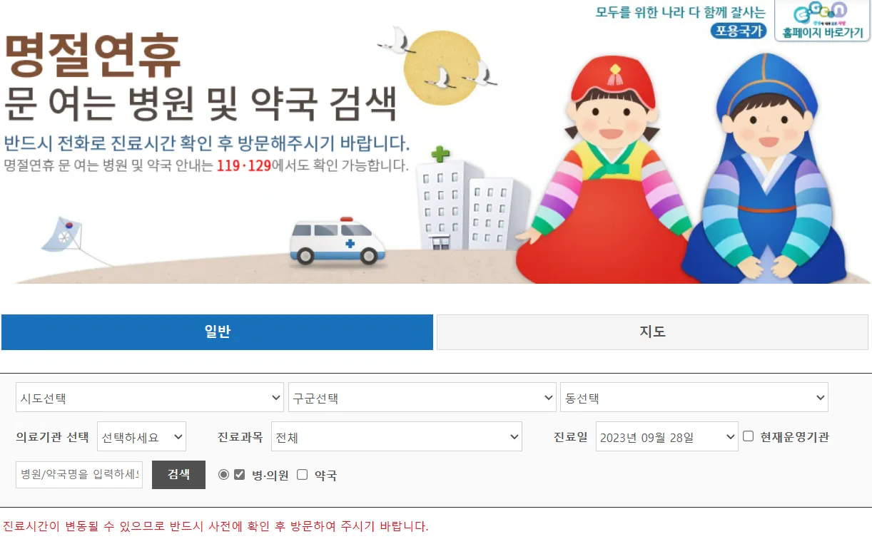 추석 연휴에 문 여는 병원 찾는 사이트 어디라구요?