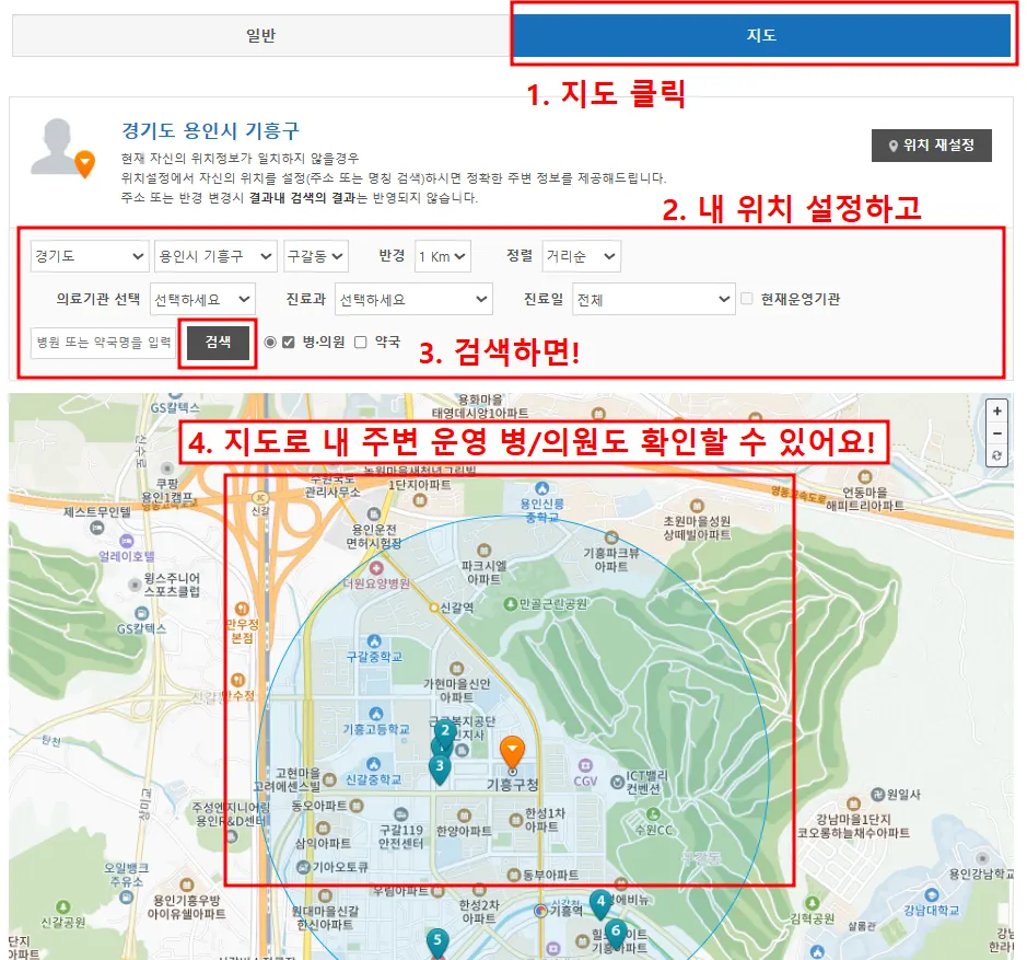 검색을 눌렀다면 해당 지역에서 운영하는 병/의원