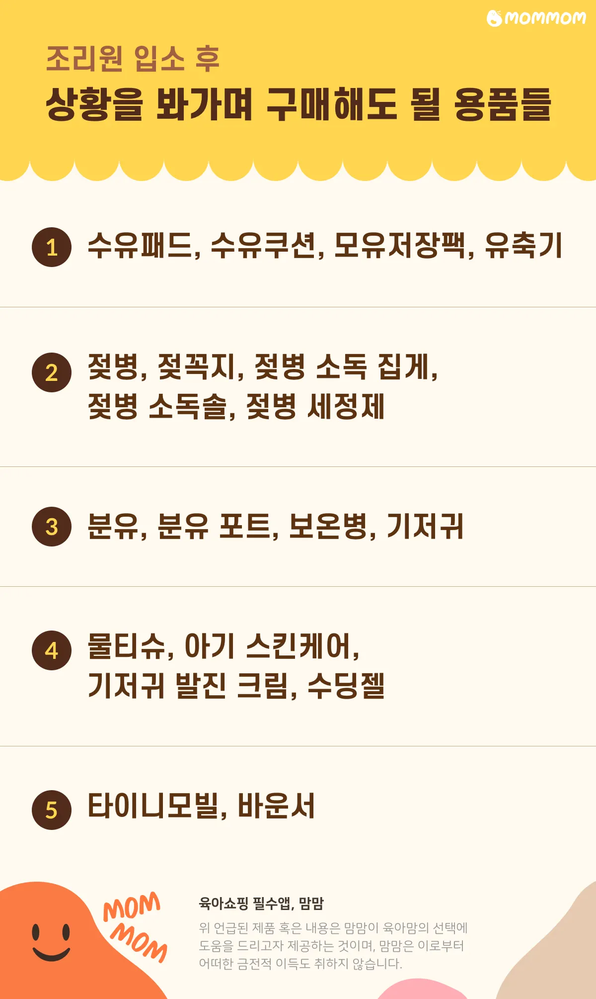 이번 콘텐츠에서는 이어서 상황에 따라 구매하면 되는 용품들 리스트 정리해드릴게요!