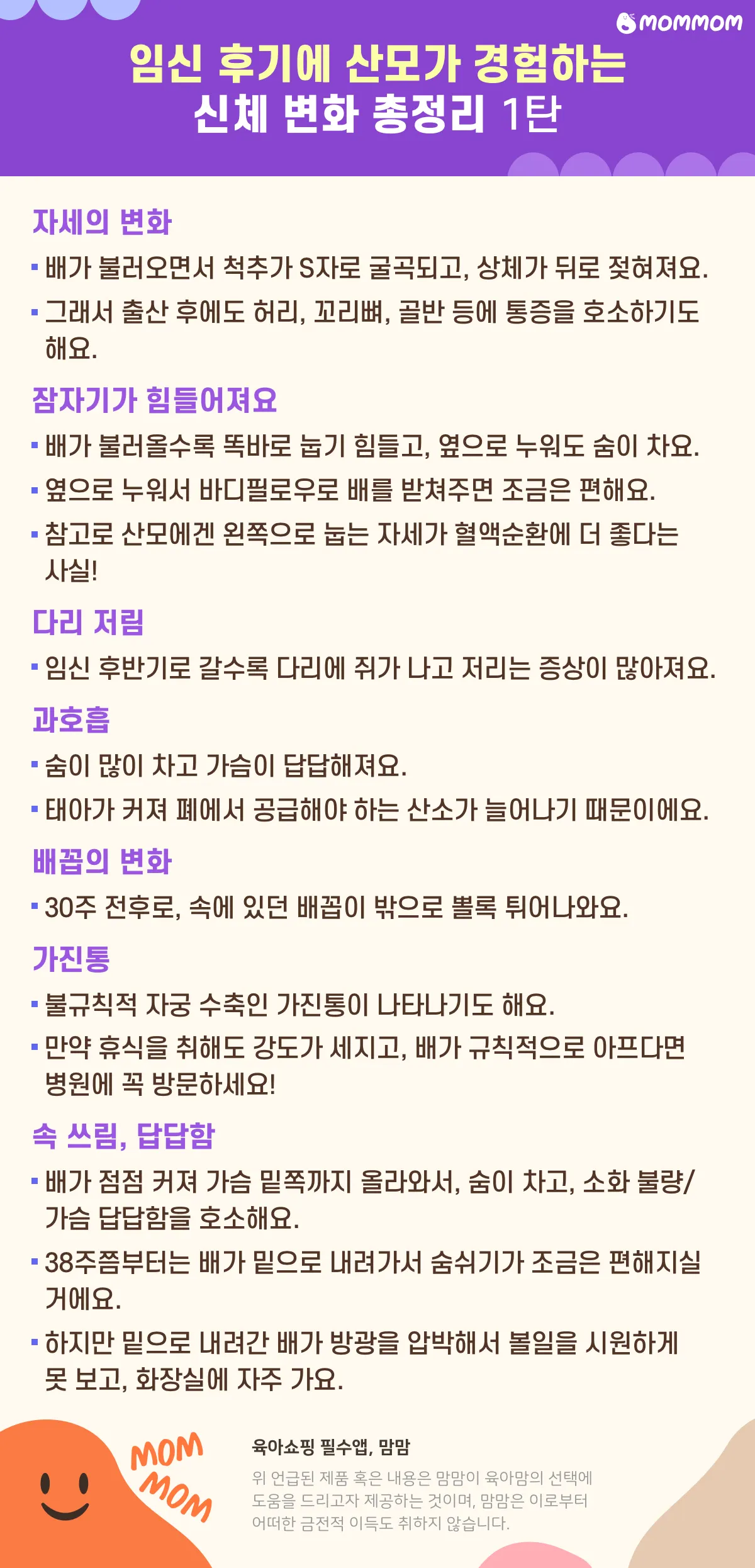 이번 콘텐츠는 임신 후기에 나타나는 신체 변화 1탄이었어요!