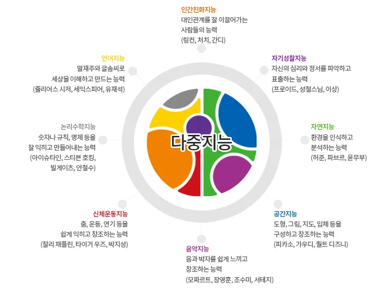 다중지능 이론이란, 하버드 대학의 하워드 가드너 박사가 창시한 이론을 의미해요.